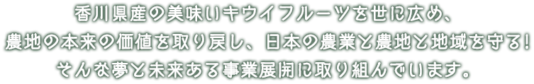『香緑(こうりょく)』『さぬきゴールド』『さぬきキウイっこ』などの、香川県で生まれたオリジナル品種のキウイフルーツを栽培しています。
